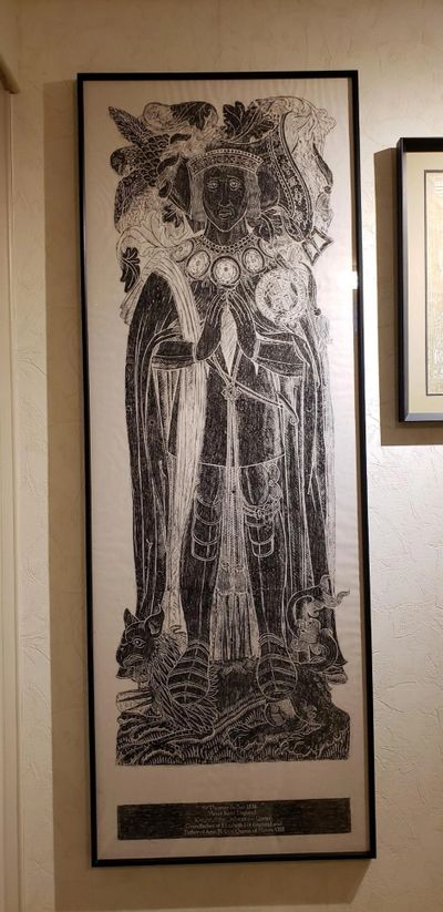 The example here was done in the Devon area and the print below reads: Sir Thomas Bullen 1538, Heyer Kent England, Knight of the Order of the Garder, Grandfather of Elizabeth I of England and, father of Ann Beleyn Queen of Henry VIII